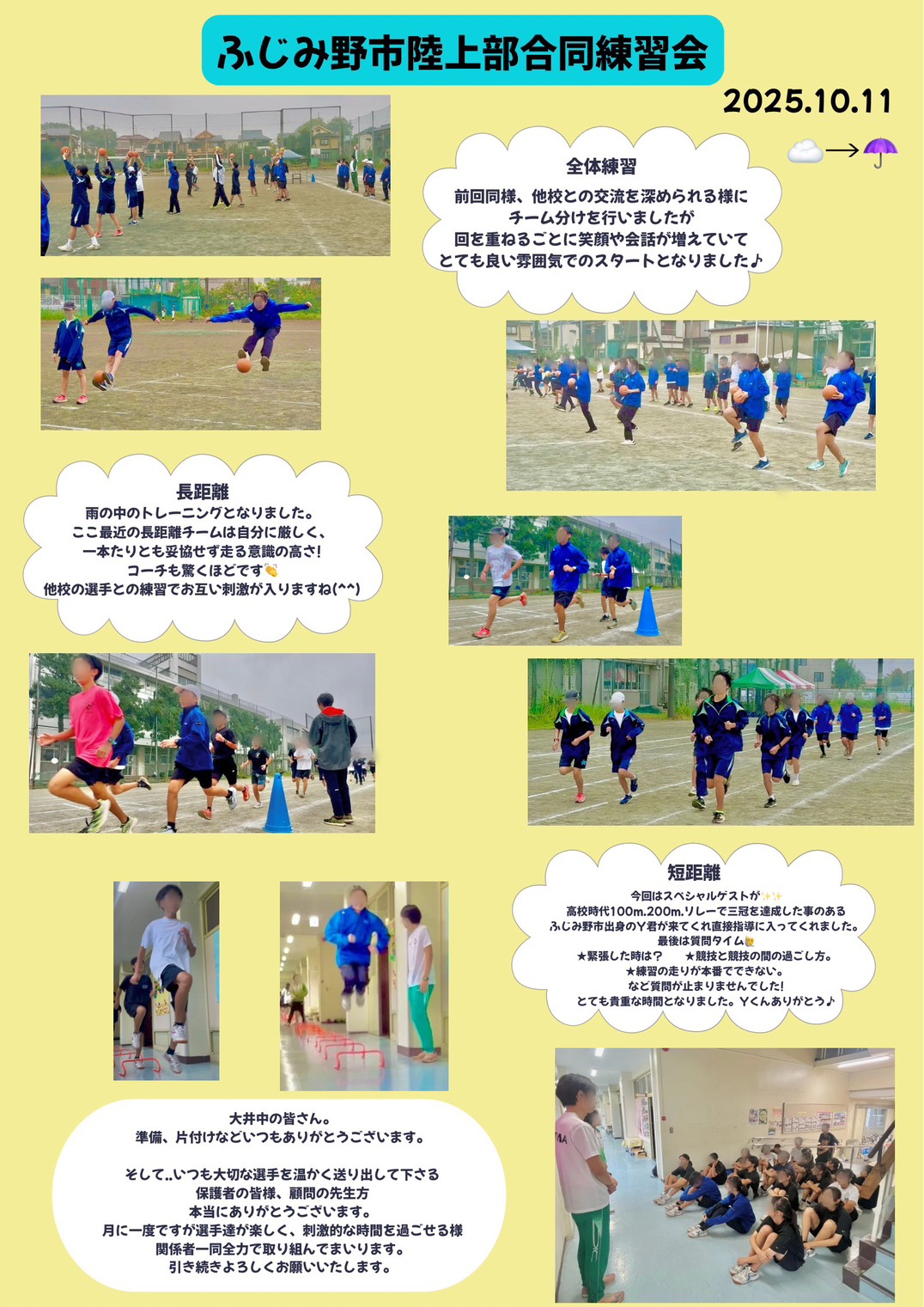 陸上競技(10/11)の様子江森コーチが今月も報告レポートをつくってくださいました!是非ご確認ください!