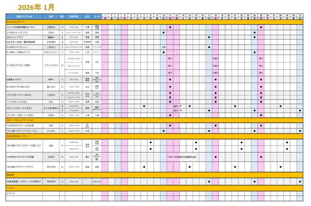 2026年1月度予定(PDF版)